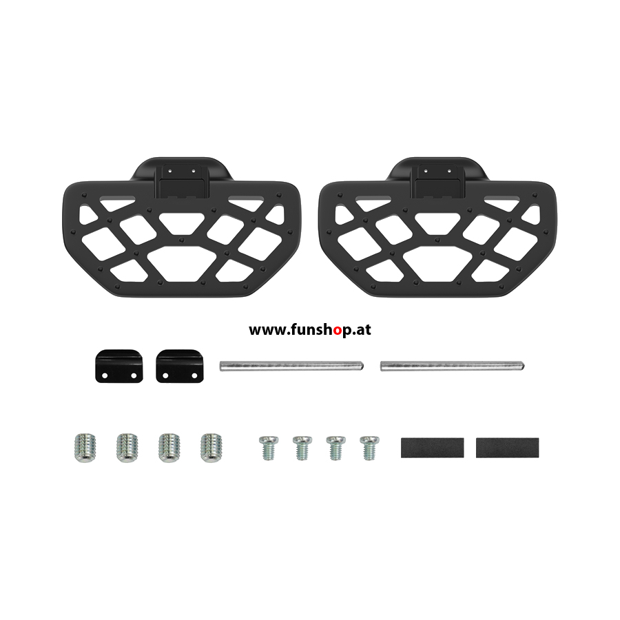 Das komplette Set besteht aus 2 Stück Honeycomb Pedale in schwarz inklusive Pedalhaltestift und Wurmschraube.